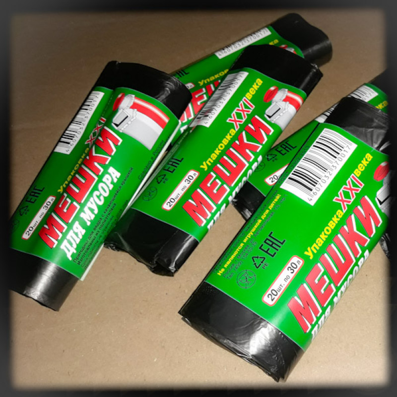 Мешки для мусора 30 л. 20 шт в рулоне черные (арт. 100467а)