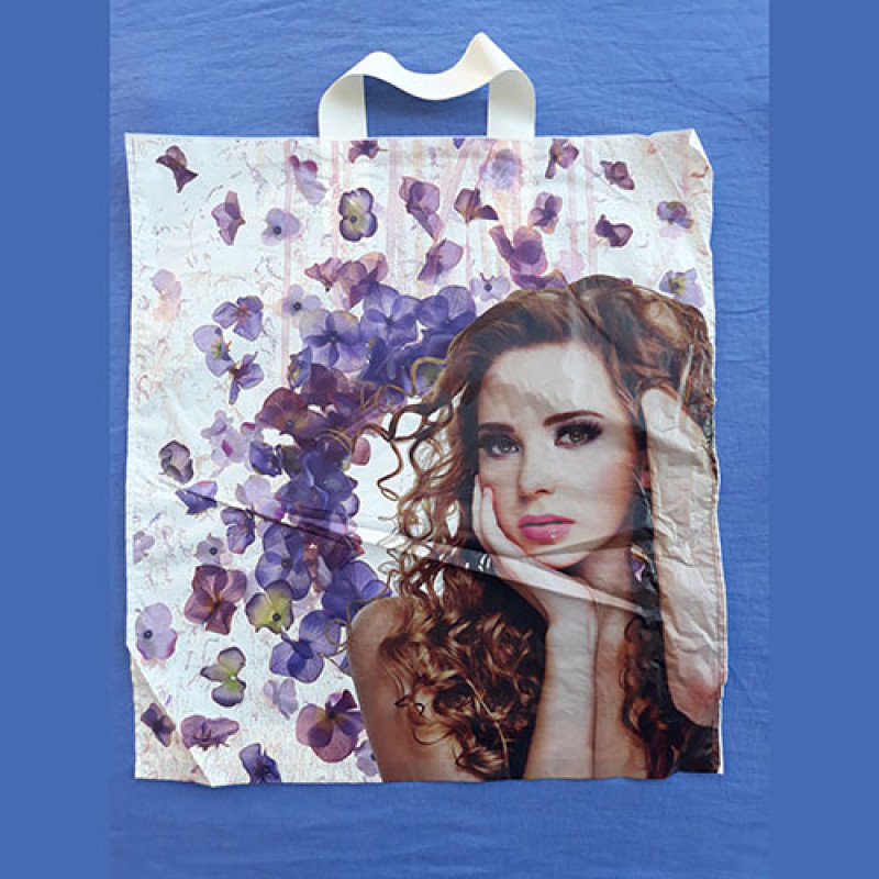 Пакет п/э ПНД ПТЛ с петлевой ручкой односторонний Девушка в лепестках на белом фоне 37*40 20 мко. (арт. 100803)