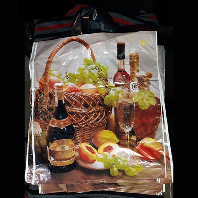 Пакет п/э ПВД 38*42 с петлевой ручкой ПТЛ 30 мкр. Коньяк вино град и цветы (10 шт.уп.) (арт. 100800)