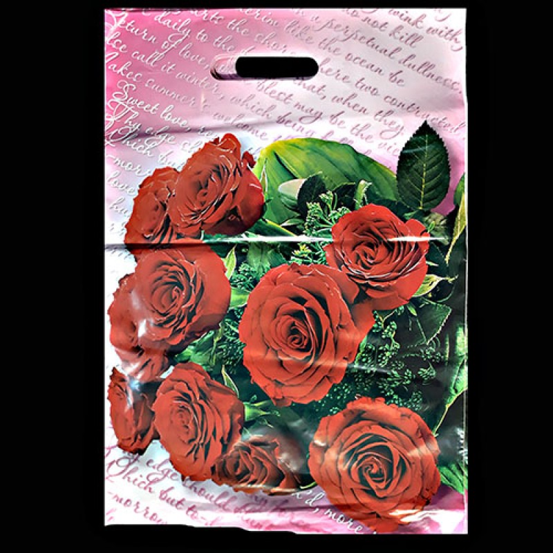 Пакет п/э с вырубной ручкой ВУР Розы ПВД 20 мкр.28*40 (уп. 15 шт.) (арт. 1)