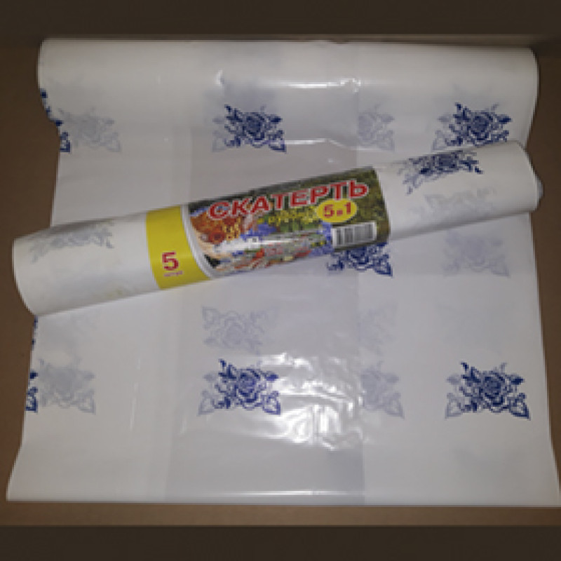 Скатерть п/э 5 шт. в рулоне (110*180) белая синие цветы (арт. 9.2.6)
