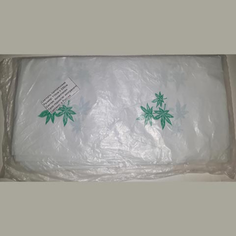 Скатерть полиэтиленовая размер 110*220 на удлиненный стол белая зеленые цветы (арт. 9.2.4)